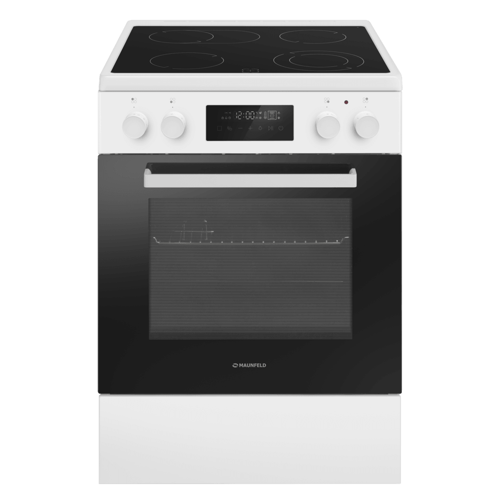 Электрическая стеклокерамическая плита MAUNFELD MEC611CW09TD — практичное решение для тех, кто хочет получить полноценную духовку и удобную стеклокерамическую поверхность в едином корпусе. Модель сочетает лаконичный белый дизайн и продуманную эргономику: понятные переключатели, дисплей и электронный таймер помогают легко контролировать процесс готовки.