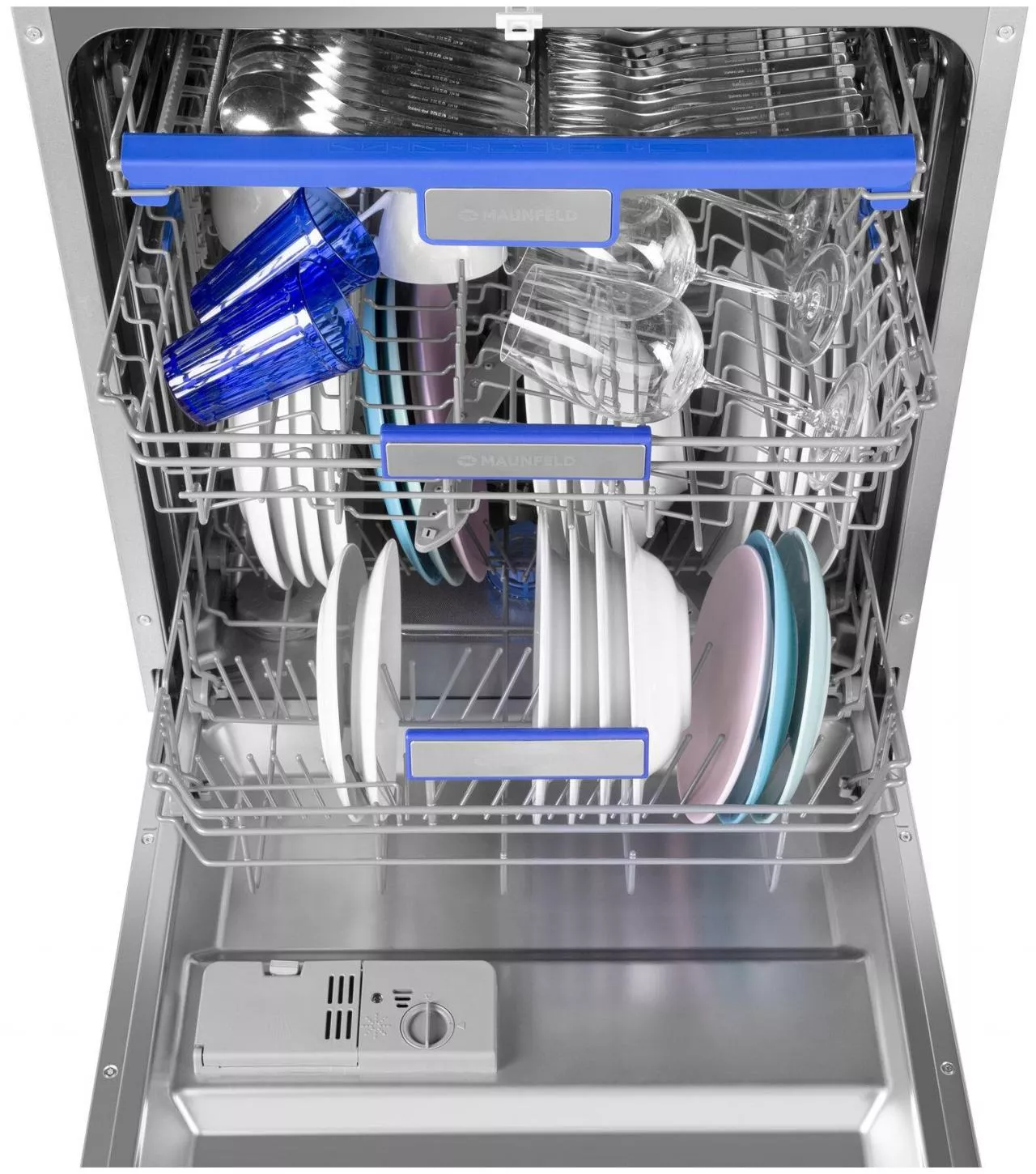 Особенности конструкции - внутренняя поверхность из нержавеющей стали, дисплей, использование средств 3 в 1, подсветка камеры, регулируемая по высоте корзина для посуды, таймер отсрочки