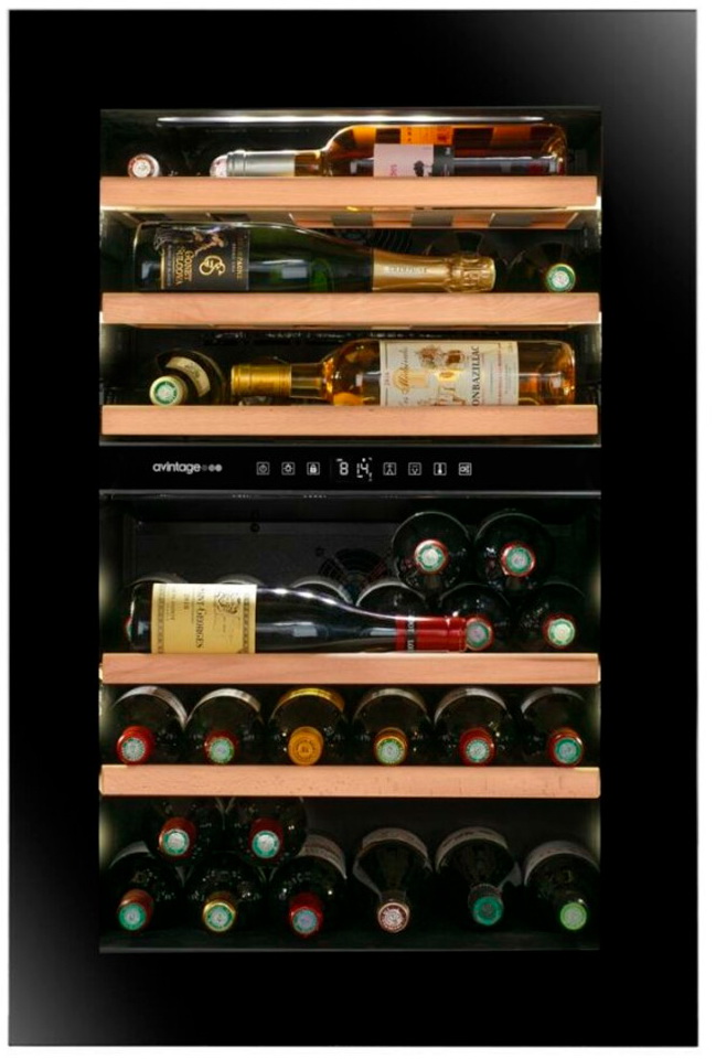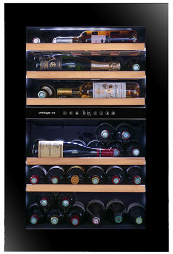 Позволяют задать нужную температуру для хранения вина разных видов. Разделение общего пространства на две зоны обеспечивает сохранность вкусовых качеств напитков. Общая рабочая температура — от 5°С до 20°С.
